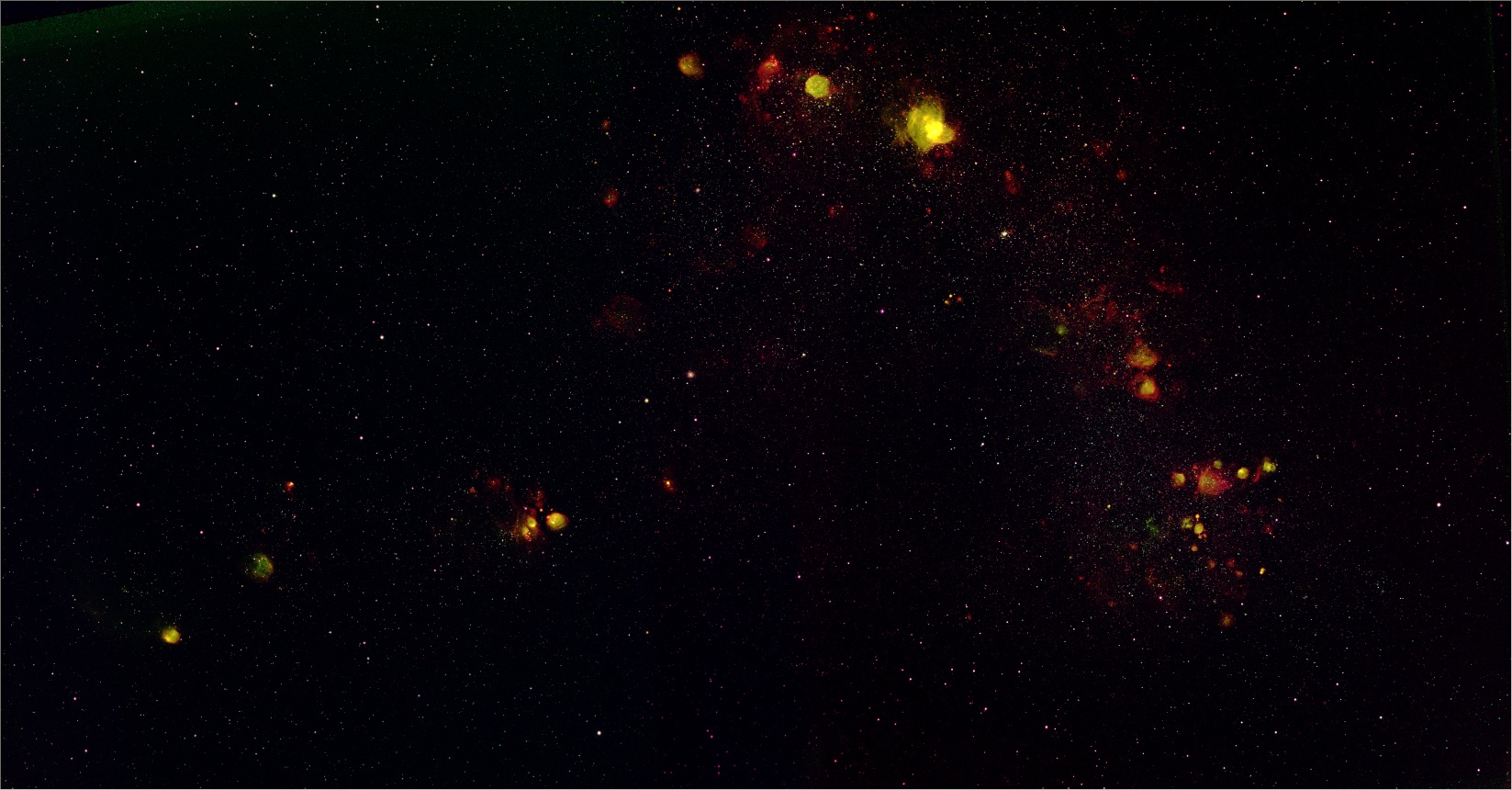 Mosaic image of the SMC in Hα (red), OIII (green) and SII (blue) with data from MCSF.