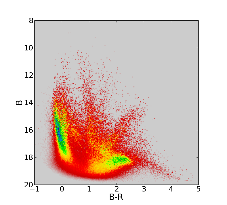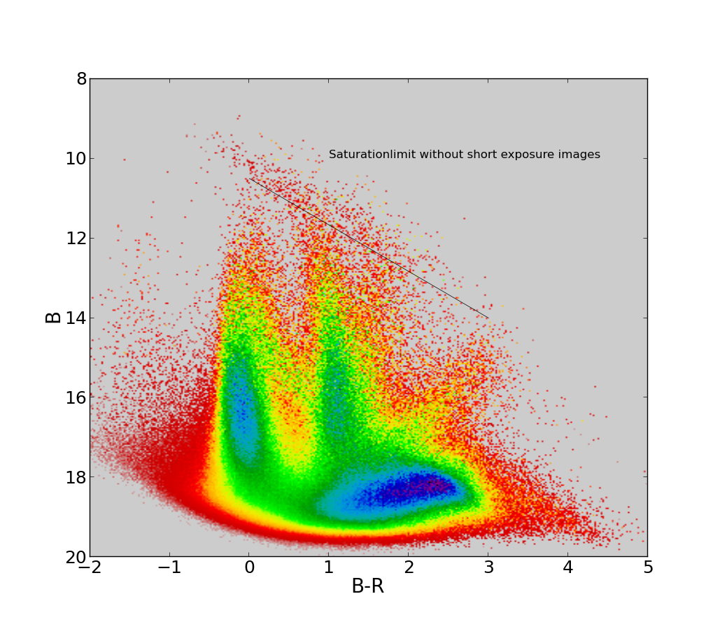 Color-Magnitude-Diagram of the Large Magellanic Cloud with a photometric error of less than 0.1 mag (~1.9 Million stars out of ~3 Million).
