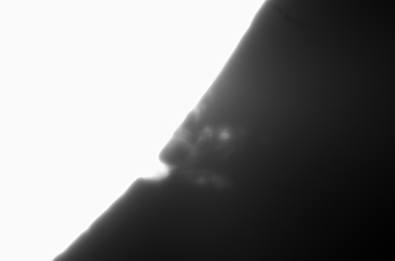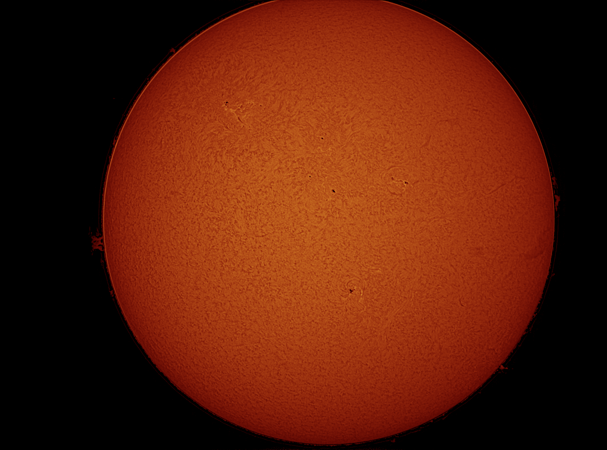 Bereits am Vortag wurden Sonnenbeobachtungen mit dem neuen Coronado Sonnenteleskop des AIRUB durchgeführt. Dabei gelangen Anika Beer und Arpad Miskolczi einige Aufnahmen der Sonne bei der H-Alpha Wellenlänge (siehe oben), wobei der Spektralbereich mit Hilfe eines Etalons begrenzt wurde. Das erste Bild ist eine Gesamtansicht der Sonne, worauf einige Sonnenflecken und Protuberanzen am Rand zu erkennen sind; das zweite ist ein animiertes gif, welches die Bewegung einer Protuberanz über einen Zeitraum von etwa zwei Stunden zeigt.