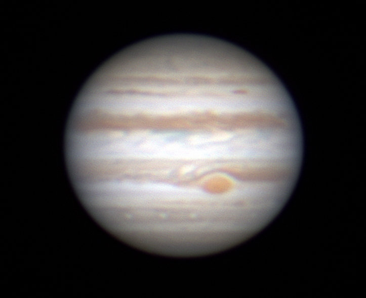 Beim testen einiger Teile zur Verbesserung des Übungsteleskops des AIRUB gelang Arpad Miskolczi am 12.02.2015 bei relativ gutem Seeing dieses Bild von Jupiter. Eindrucksvoll ist der markante Große Rote Fleck des Jupiter zu sehen - ein seit Jahrhunderten aktiver Sturm.