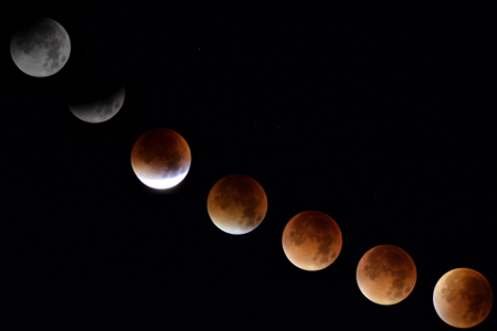 Anika Beer gelangen einige schöne Fotos der verschiedenen Phasen der Mondfinsternis, die hier in einer Collage zusammengefasst sind.