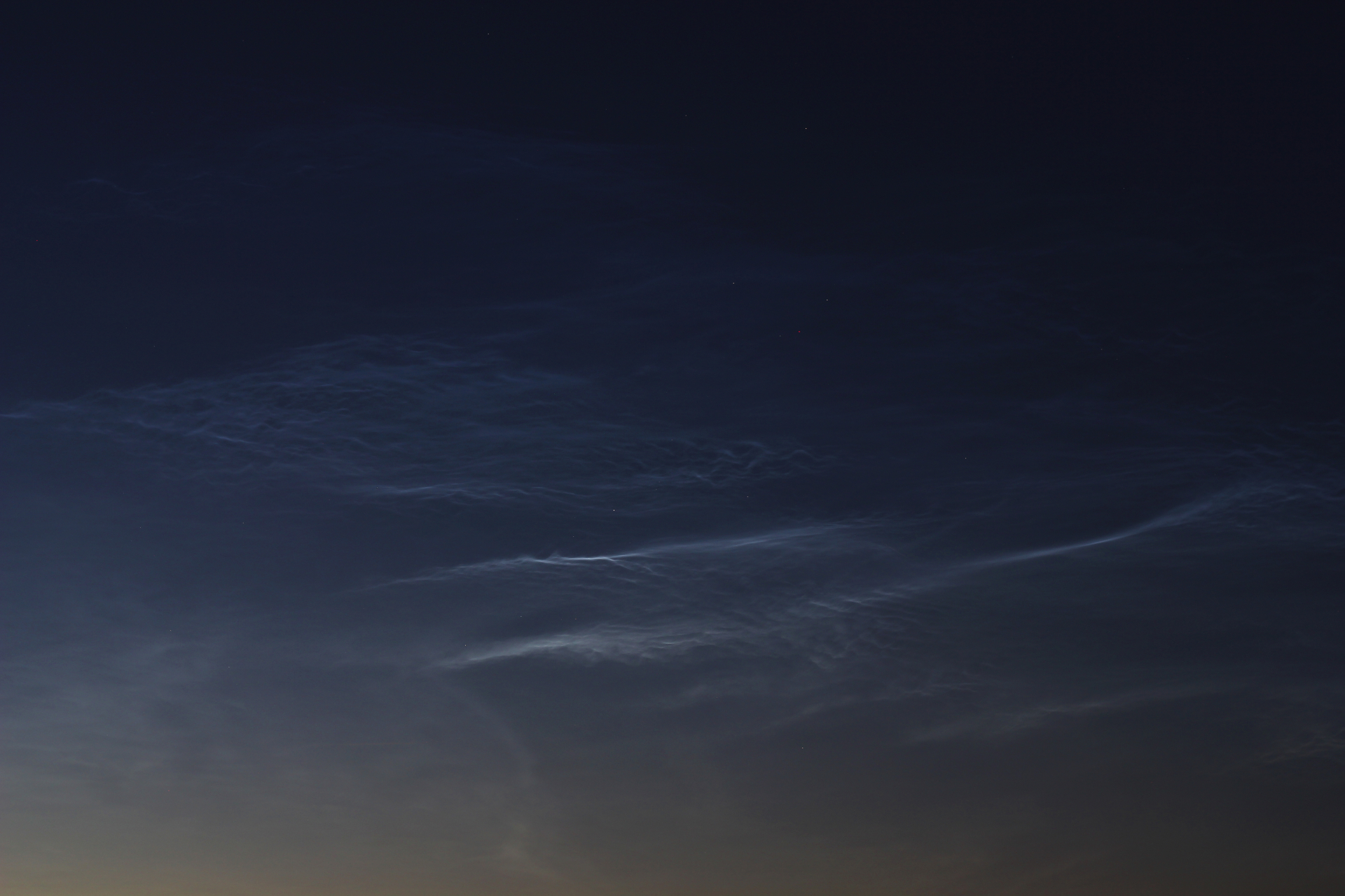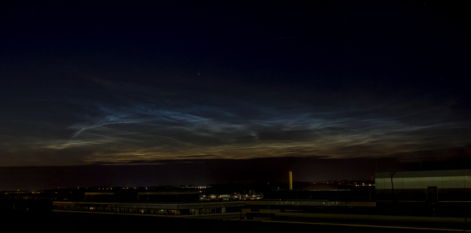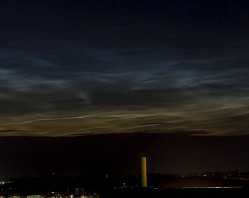 Während einer Beobachtungsnacht auf dem Dach von NA, die im Rahmen der Vorlesung Leben im All am 03.07.2014 stattgefunden hat, gelangen Sebastian Schulze einige eindrucksvolle Bilder von Nachtleuchtenden Wolken über Bochum, die hier zu sehen sind.