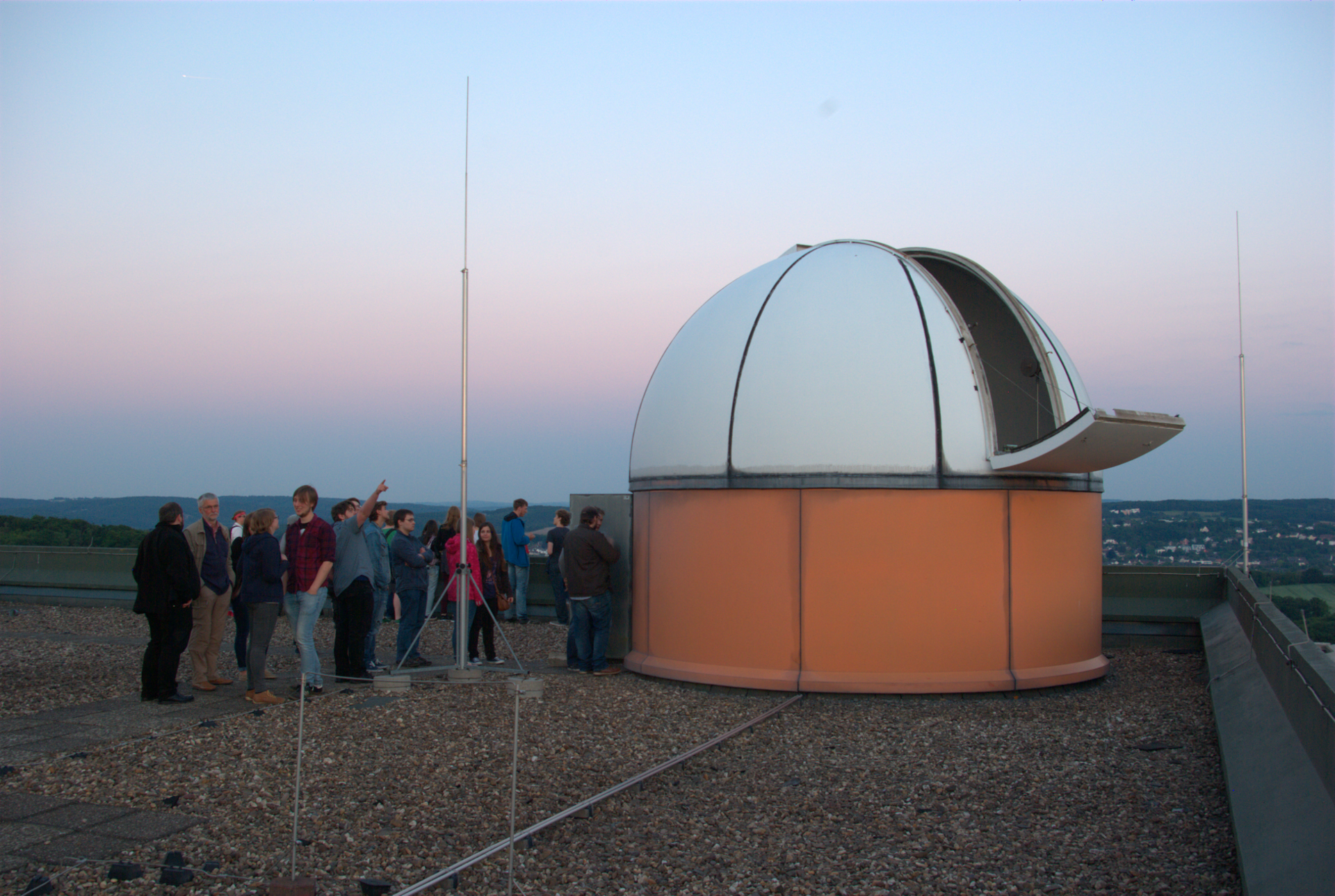 Am 10. und 11. Juni gab es für Studenten aus den Vorlesungen Einführung in die Astrophysik und Leben im All die Gelegenheit, mit Hilfe des Sonnenteleskops des AIRUB sowie des Übungsteleskops die Sonne und einige Planeten (Venus, Jupiter, Saturn) zu beobachten.