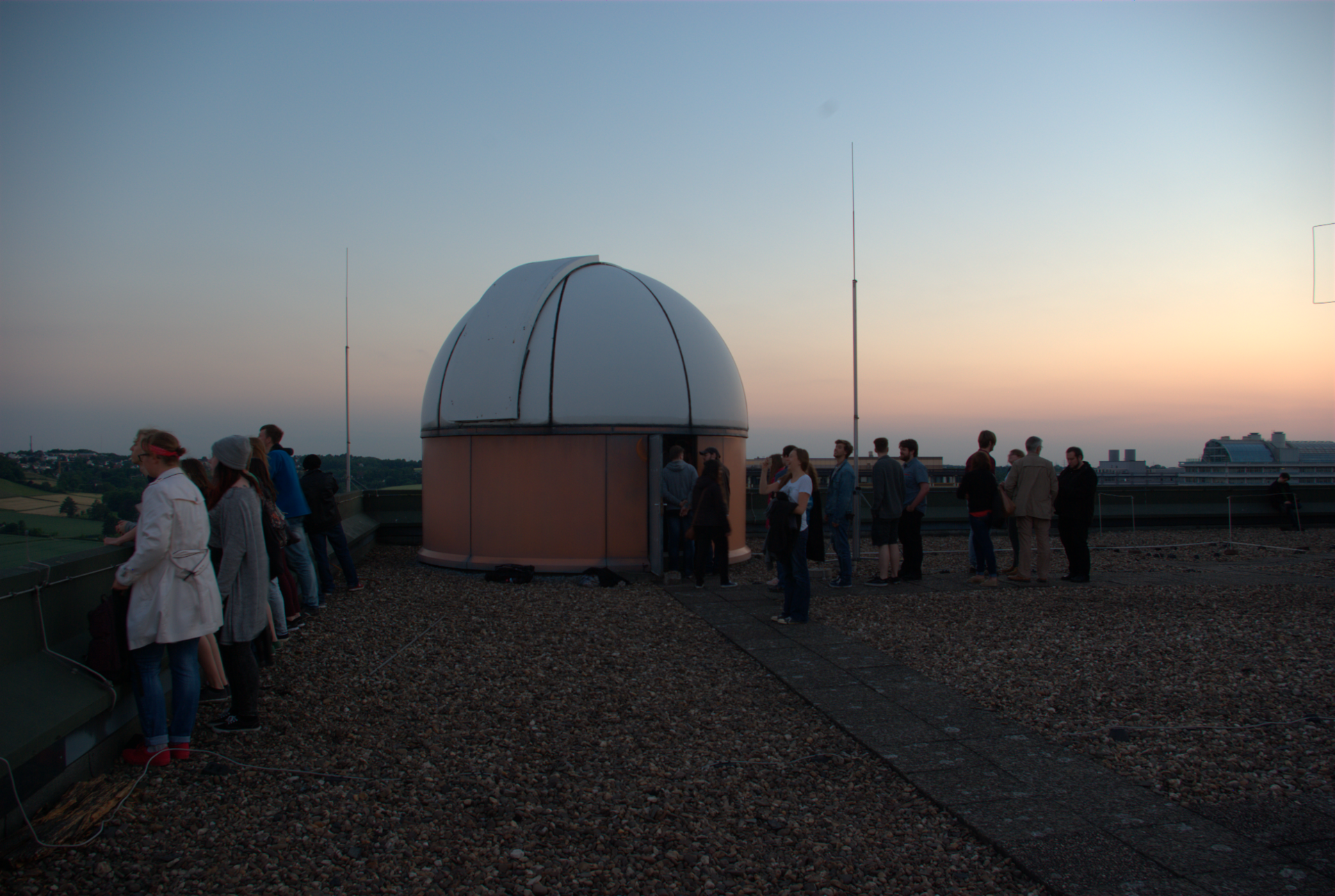 Bei hervorragenden Wetter fanden sich etwa 30 Stundenten in der Nacht vom 11. Juni auf dem Dach von NA ein, um einige Blicke durch unser Teleskop zu werfen.