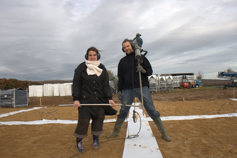 Das Einschlagen der Erdanker ist für Astronomen ungewohnt harte Arbeit. (M. Jütte)