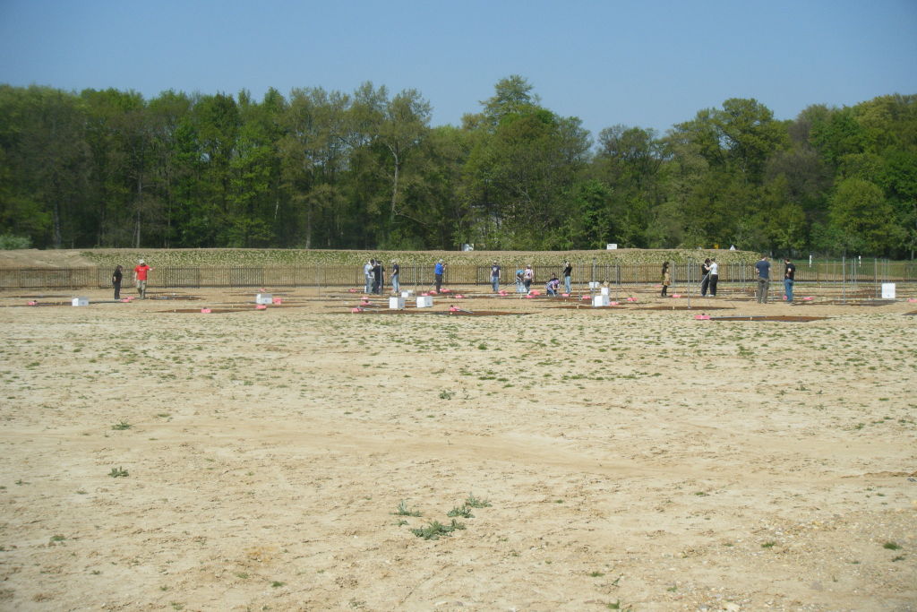 Das LBA-Feld kurz vor der Installation der Antennen. Zu erkennen sind die aus dem Boden ragenden Kabel. (B. Burggraf)