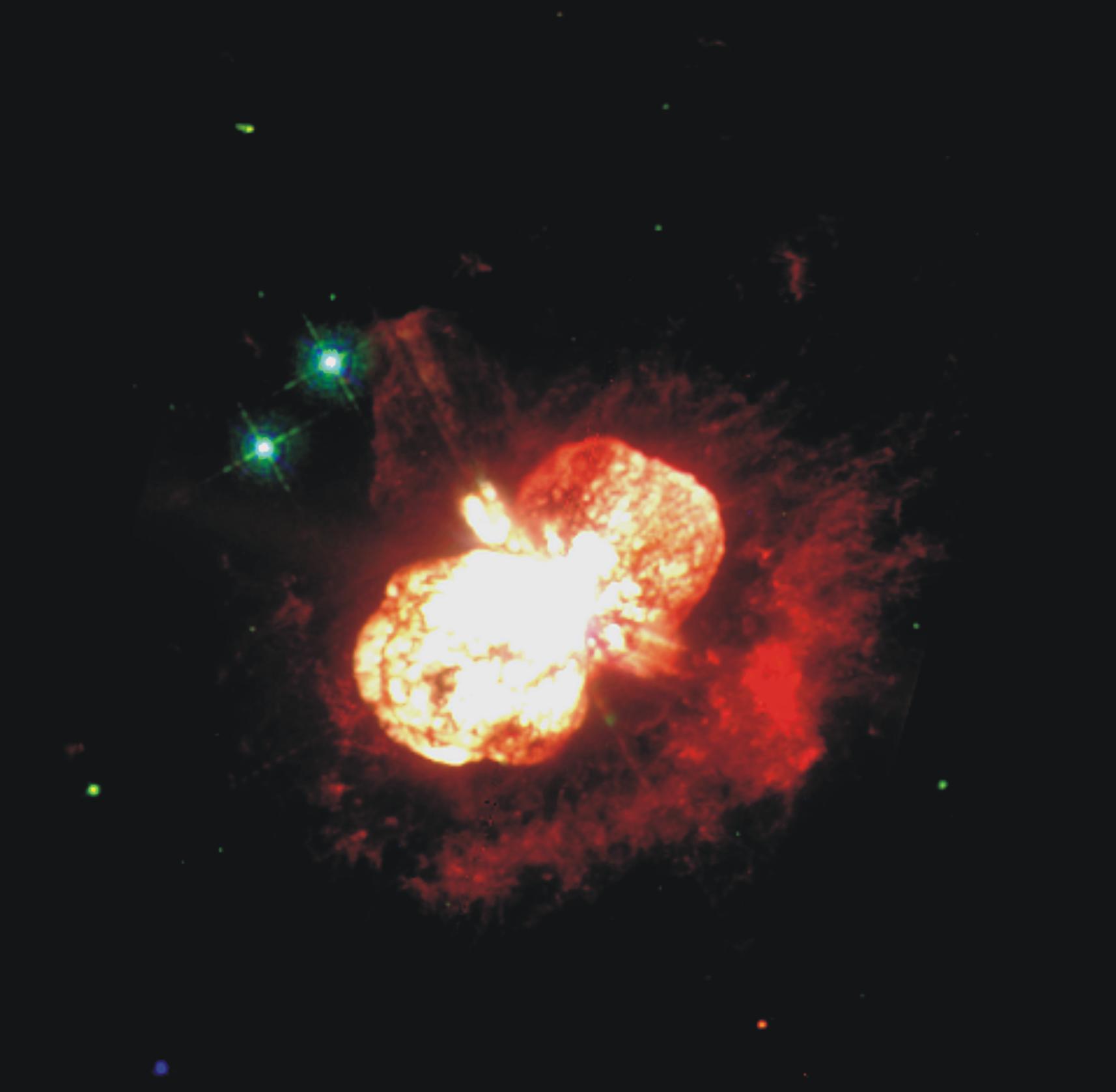 HST-Falschfarbenbild des Homunculus-Nebels um den LBV Eta Carinae (Weis 1999). Eine detaillierte Analyse diese Nebels, sowie von weiteren LBV-Nebeln, ist Teil der Forschungsarbeit in unserer Stellarphysik-Gruppe.